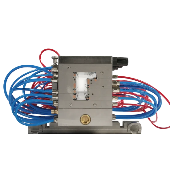 Kritische Profilsektionen können örtlich gekühlt und somit die Profilabmessungen in vollem Extrusionsbetrieb beeinflusst werden. Der Durchfluss wird ständig kontrolliert, eventuelle Kühlungsprobleme werden angezeigt, bevor Probleme am Profil entstehen.